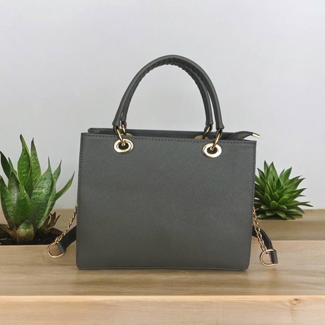 Сумка жіноча Betty Pretty з високоякісної екошкіри сірого кольору з тисненням рубчик. Дуже красива, практична, зручна сумка, має популярність серед покупців. Якісна фурнітура золотистого кольору. Середнього розміру В21хШ27хГ13см. Є задня зовнішня кишеня на блискавці, одне відділення з перегородкою на блискавці, а також два внутрішніх кишень для дрібниць. Крім того, є ремінь-перетяжка на плече з елементами декоративного ланцюжка.