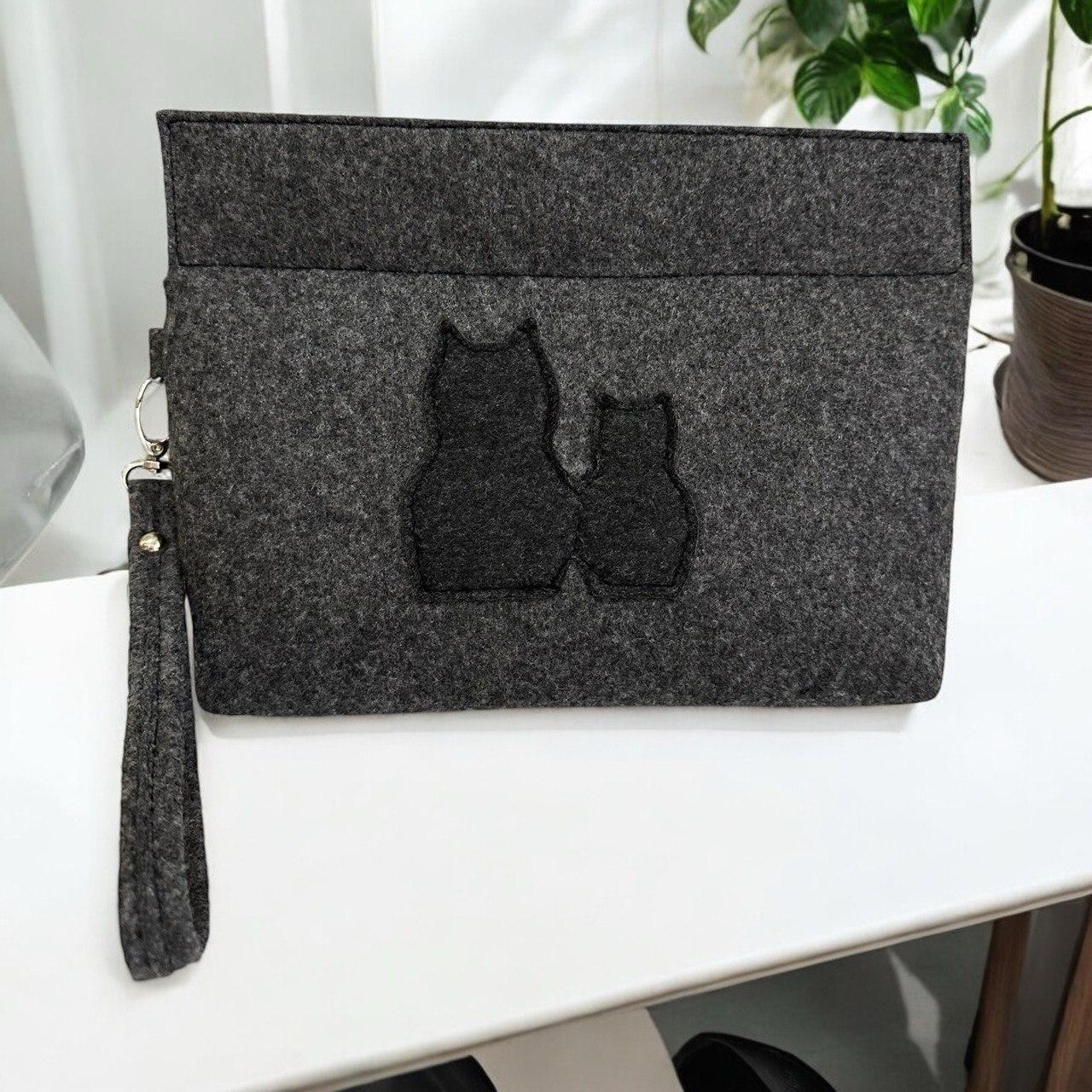 Сумочка-клатч з сукна Betty Pretty темно сірого кольору. Прикрашена аплікацією. Красива, зручна, легка, вмістка. Виготовлена з екологічно чистого сукна. Має одне відділення, з внутрішньою кишенею, яке закривається на магніт. Ручка кріпиться на карабіні. Абсолютно не вимагає складного догляду.