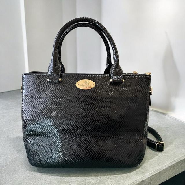 Сумка жіноча Betty Pretty з високоякісної лакової штучної шкіри чорного кольору з тисненням під "рептилію". Сумка виготовлена в фурнітурі золотистого кольору. На задній стінці виробу є кишеня на блискавці. Сумка досить вмістка, зручна, практична. Має три великі відділення з двома внутрішніми кишенями для телефона та дрібниць, а також потайну кишеню на блискавці. Крім того, сумка має довгий ремінь-перетяжку.